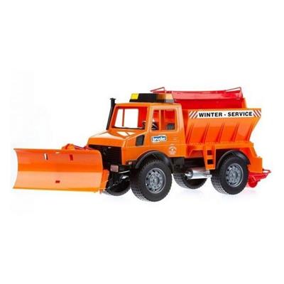 Legetøjet fra Bruder er seje maskiner og køretøjer, der er meget virkelighedstro med deres smukke detaljer! Denne bil er en orange lastbil er en saltspreder med en sneplov foran.