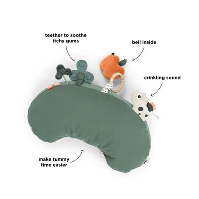 Tummy time aktivitetspuden fra Tiny Farm-kollektionen er designet til at støtte dit barn under mavetid og samtidig stimulere sanserne. Den bløde pude hjælper med at opbygge kropsstyrke, mens de forskellige teksturer, knitreeffekter og sensoriske elementer vækker nysgerrigheden.