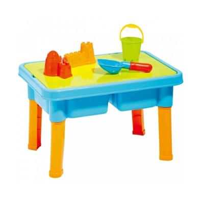 Med dette fine legebord i mange flotte farver, kan barnet lege med skovle, rive, spand og sjove modeller til at lave sandslotte af, mens barnet står ved bordet.