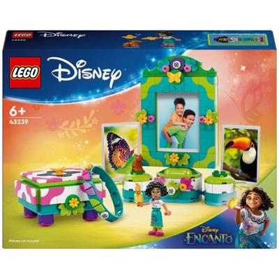 Sættet inkluderer et smykkeskrin med plads til det medfølgende armbånd, en fotoramme med stander og ekstra holdere til små billeder samt to pladser til LEGO ? Disney minidukkefiguren af Mirabel og LEGO Disney figuren af en kapivar.