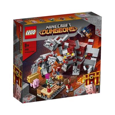 Æsken indeholder 4 minifigurer af Hex, Hedwig, Hal og Valorie et gigantisk rødstensmonster og en rødstensgolem samt masser af seje Minecraft-våben.