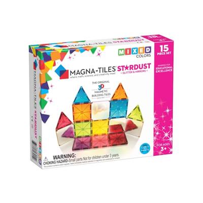 Indhold: 15 Magna-Tiles fliser (4 firkanter med spejle, 7 trekanter med glitter, 4 ligesidede trekanter)
