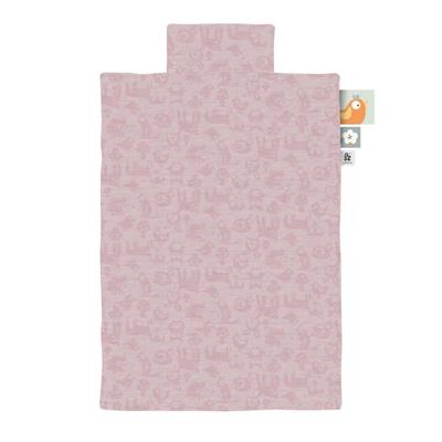 Økologisk Baby sengetøj fra Sebra Interiør i temaet Forest i farven blossom pink. Motiverne på sengetøjet forestiller skovens mange søde dyr af rådyr, pindsvin, snegl og ræv. Derudover er der på dynebetrækket påsyet nulreflapper, som barnet kan finde tryghed i. Nulreflapperne er med motiver af ræv og pindsvin, agern og svamp samt den sidste med Sebra logo.