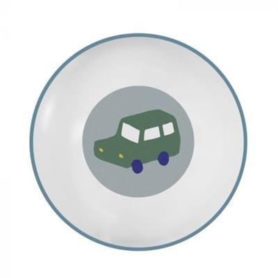 En sød dyb tallerken med en lille bil i bunden, der gør det sjovere for barnet at spise op. Tallerkenen kan bruges til morgenmad, suppe eller til snacks.