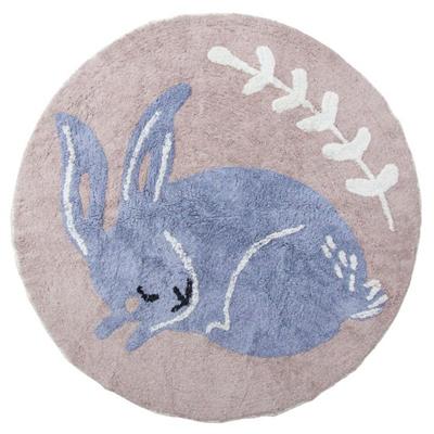 Tæppet er rundt og i nedtonede rosa, hvide og lyslilla toner, med motiv af den søde kanin Bluebell fra Sebra. De sarte farver gør, at tæppet kan bruges i stort set alle indretninger på børneværelset.