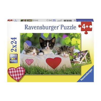 Sleepy Kittens er et sødt puslespil, der forestiller søde små kattekillinger. Puslespillet er for børn over 4 år. Indeholder 2 puslespil med 24 brikker i hver.
