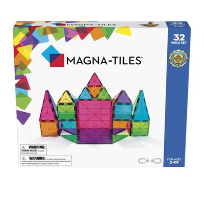 Magna-Tiles sæt med 32 dele åbner op for timevis af kreativ leg og eksperimentering. De magnetiske fliser giver børn mulighed for at klikke, forbinde, stable og sortere geometriske former i klare, levende farver, hvilket stimulerer fantasien og understøtter tidlige byggefærdigheder.